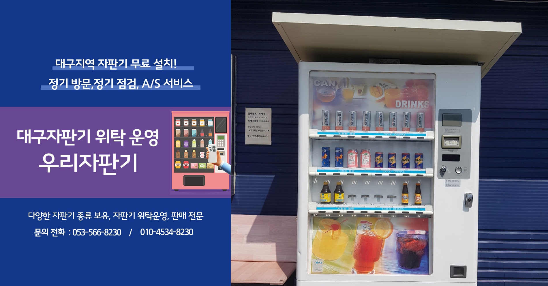 대구시자판기 임대 및 설치 전문 우리자판기 안녕하세요! 대구시자판기 임대 및 설치 전문 업체, 우리자판기입니다. 저희 우리자판기는 대구 지역에서 다양한 자판기 임대 및 설치 서비스를 제공하며, 고객님의 편리함과 만족을 위해 최선을 다하고 있습니다. 자판기는 다양한 장소에서 간편하게 음료나 간식을 제공하는 편리한 장비입니다. 우리자판기는 최신 모델의 자판기를 보유하고 있어, 대구시자판기 임대 및 설치 서비스를 통해 고객님의 필요에 맞는 최적의 솔루션을 제